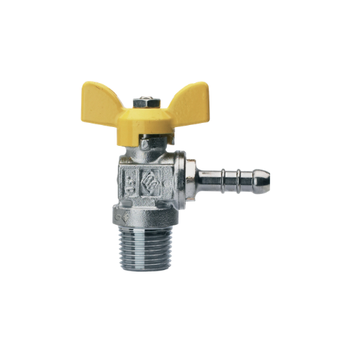 Mosazný poniklovaný kulový kohout vzorkovací s plným průtokem a ocelovým motýlem rohový. Závit vnější dle ISO 7.1 R. Těsnění hřídele 2 x PTFE (teflon) a 1 x ,,O" kroužek pryž. Pracovní teplota -20 až 90 °C. Teflonová ucpávka je oproti neznačkovým kulovým kohoutům namontována spolu s hřídelkou zevnitř kulového kohoutu viz. detail zde. Kulový kohout je určený pro plynná paliva 1., 2., a 3. třídy (zemní plyn, směs propan-butan, svítiplyn). Tlaková třída MO5, pracovní přetlak: 0,001 MPa až 0,5 MPa.